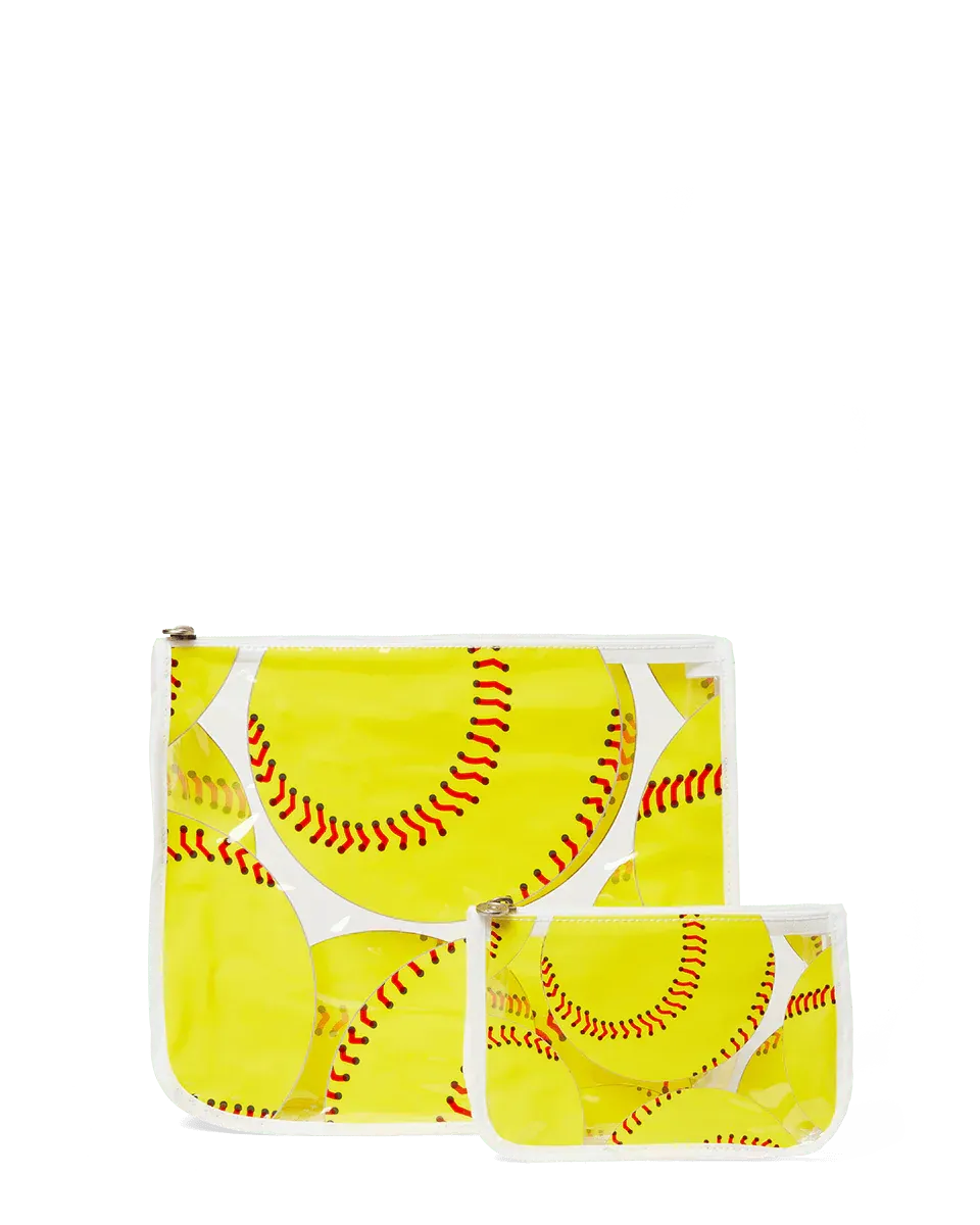 Master the art of organization with our set of small and large all-purpose pouches. See-through. leakproof and easy to clean. these zip bags easily snap into the holes in your tote. so your valuables are secure. sorted and always within reach (no clumsy rummaging). Store everything from travel-sized toiletries to credit cards. cash. IDs. ear buds and other daily essentials. Great for getaways and everyday. they come in a variety of vibrant colors and prints so you can always carry on the fun.