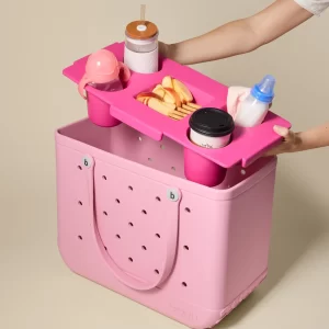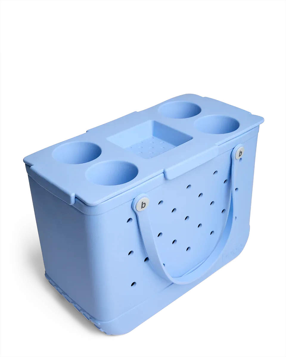 Turn the Original Bogg Bag into a tabletop for effortless outdoor gatherings. Made from lightweight. durable and antimicrobial EVA. Top o’ the Bogg to Ya features four cup holders and a tray-within-a-tray to keep snacks. bowls and small plates secure. Waterproof and weather-proof. this is a breeze to clean—just rinse or wipe. Perfect for picnics. camping. tailgating. beach days and al fresco happy hour.